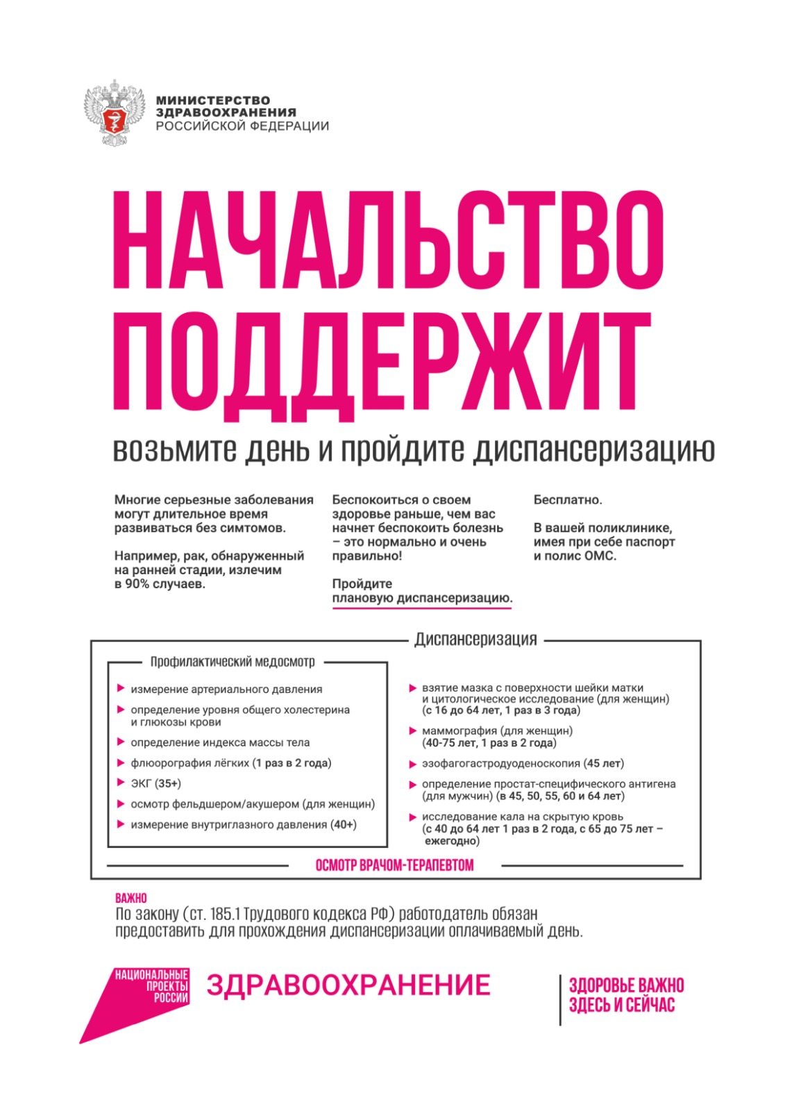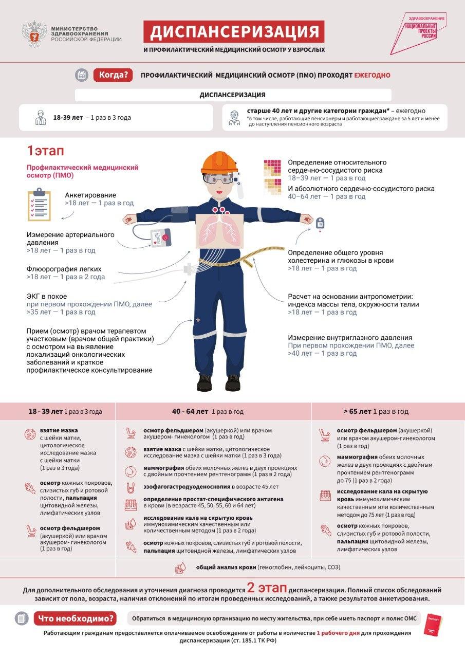 приказом Минздрава России «Об утверждении порядка проведения профилактического медосмотра и диспансеризации определенных групп взрослого населения» от 27.04.2021 No404н –